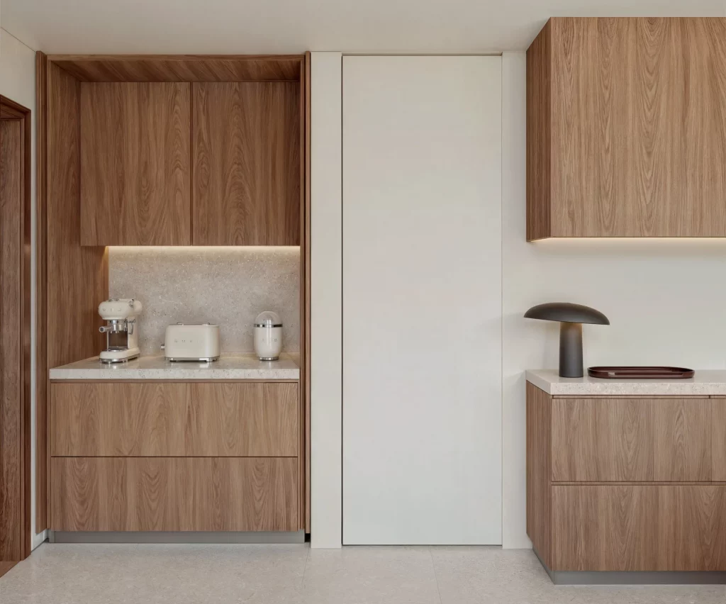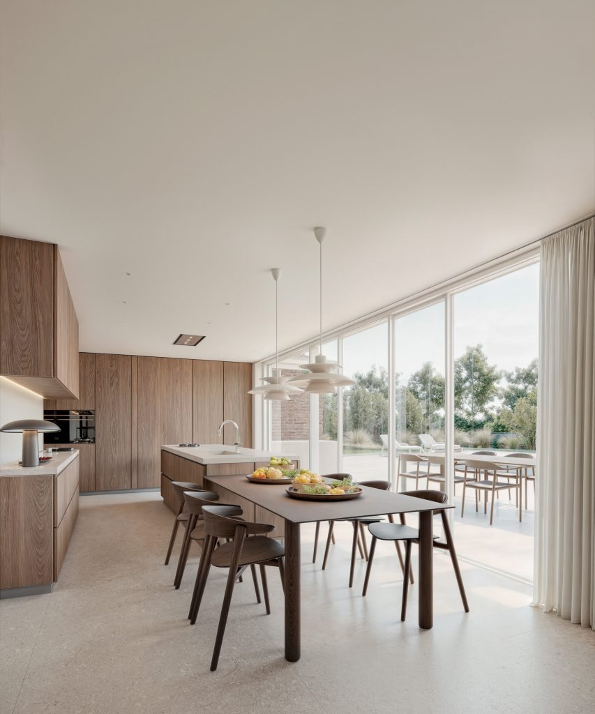 Los dormitorios, tanto el principal como los de invitados y los infantiles, fueron diseñados para responder a diferentes usos sin perder unidad estética. Destaca el despacho por su atmósfera serena, así como las terrazas, concebidas como extensiones naturales del interior. Un proyecto que refleja el equilibrio entre elegancia y calidez, adaptado al estilo de vida familiar americano.