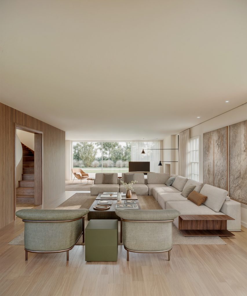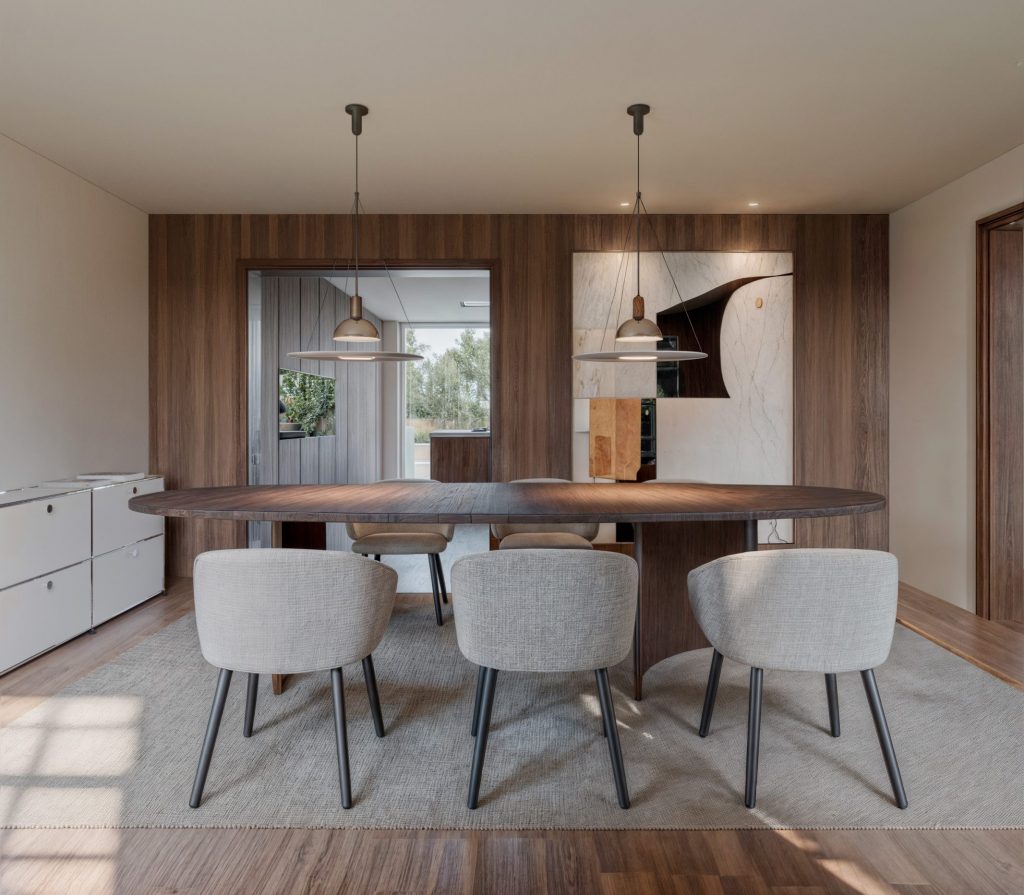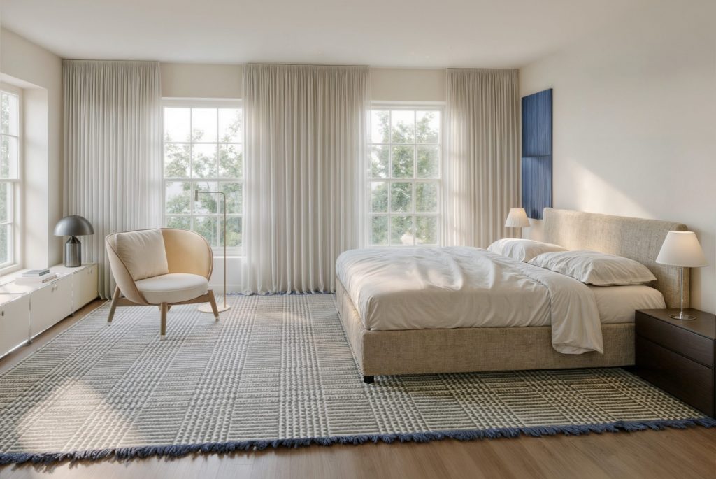 Proyecto integral de interiorismo y decoración en Chicago, concebido para una familia con necesidades funcionales y estéticas muy definidas. El mobiliario fue seleccionado cuidadosamente para dotar cada espacio de personalidad, confort y coherencia visual. En el salón, comedor y sala de estar se trabajó con piezas de líneas puras y tonos neutros, buscando crear un entorno acogedor y atemporal.