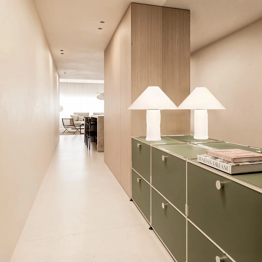 En esta reforma integral, desarrollada por MMAIN, el punto de partida fue una vivienda con gran potencial, situada en el centro de la ciudad y pensada para una familia joven con niños. Los espacios originales, largos y angostos, pedían una nueva lectura. El acceso, antes encajonado en un pasillo estrecho, se transforma ahora gracias a un gesto sencillo pero eficaz: un hueco con espejo y mueble a medida introduce profundidad, luz y una sensación inmediata de amplitud.