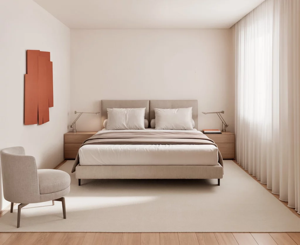 Los dormitorios infantiles se diseñan con personalidad propia, en una paleta de tonos suaves y alegres, adaptados a la sensibilidad de la familia. Los baños acompañan esta intención, combinando funcionalidad y carácter.