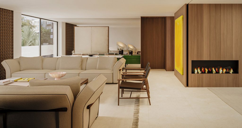 Un hogar de gran escala, donde arquitectura interior y mobiliario se entrelazan para dar forma a una atmósfera esencial y profundamente habitable.